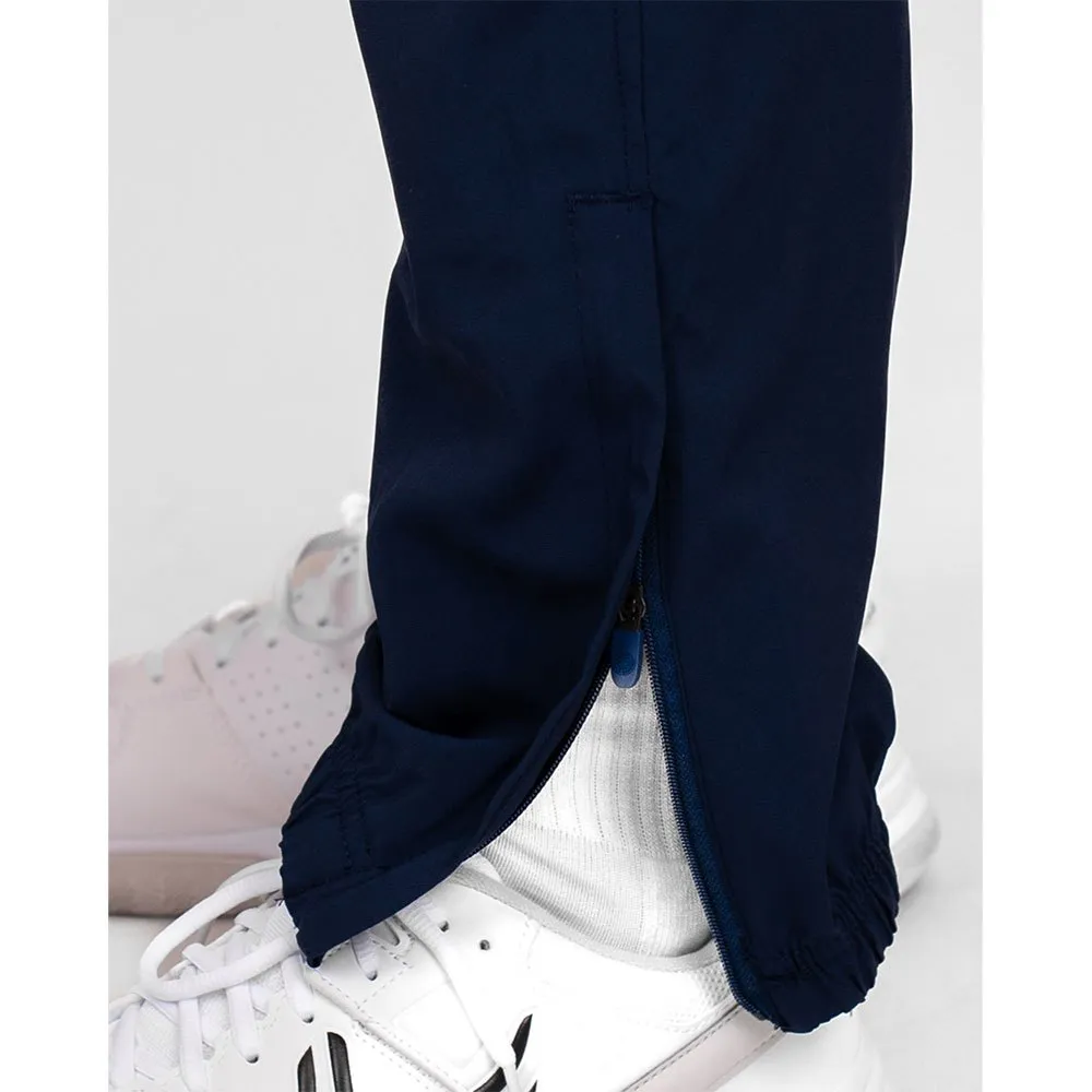 The recycled polyester training pants are made of lightweight, stretchy material that has moisture-absorbing properties. The elastic waistband a perfectly comfortable fit. In addition to the side pockets, these pants have another zipped pocket placed at the back. Thanks to the zips in the ankle area, you can easily put them on and take them off quickly, even with shoes. The pants can be perfectly combined with our jackets and could become your new team suit Thin functional trousers in a straight, close-fitting cut.