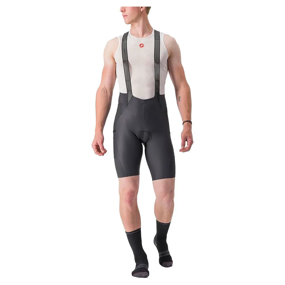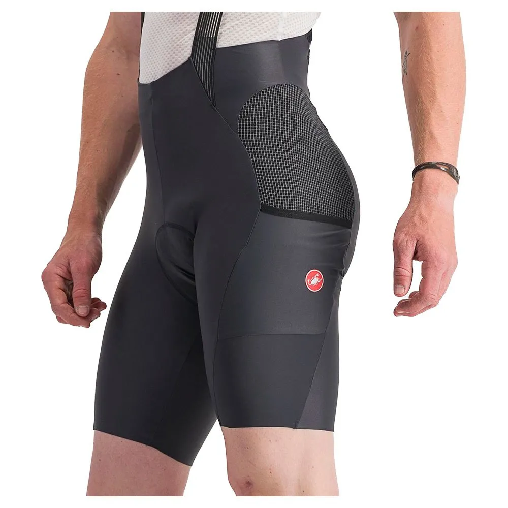 It combines the best features of Castelli´s premier race short, the Free Aero RC Bibshort, with Dyneema® side panels for protection in case of a fall, and four pockets for storage.