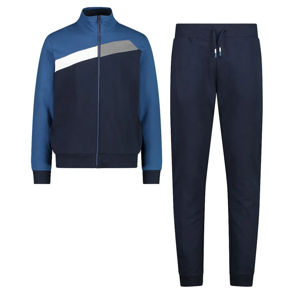 Fleece sweat suit consisting of full-zip jacket with side pockets, elasticated cuffs and hem, and pants with adjustable waist and elasticated cuffs.