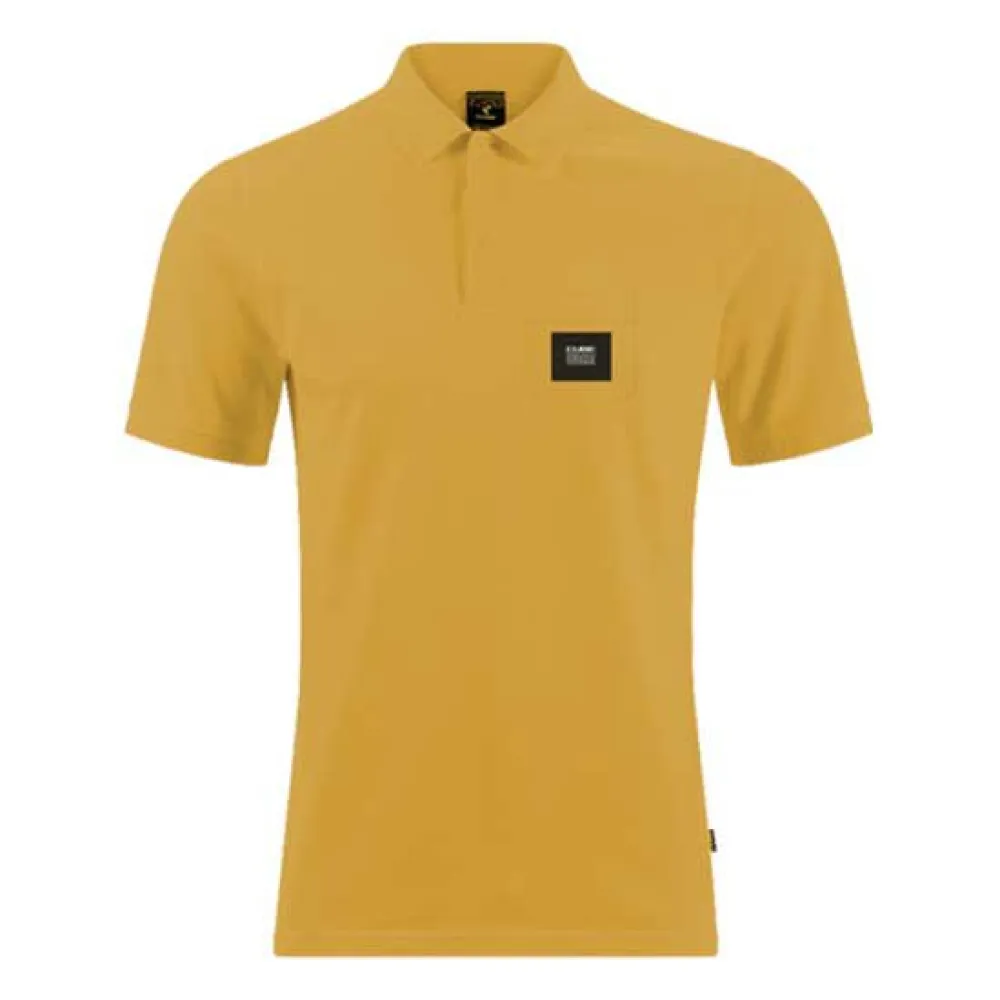 Stylish Polo Shirt with covered buttons, fashionable collar and chic logo patch.