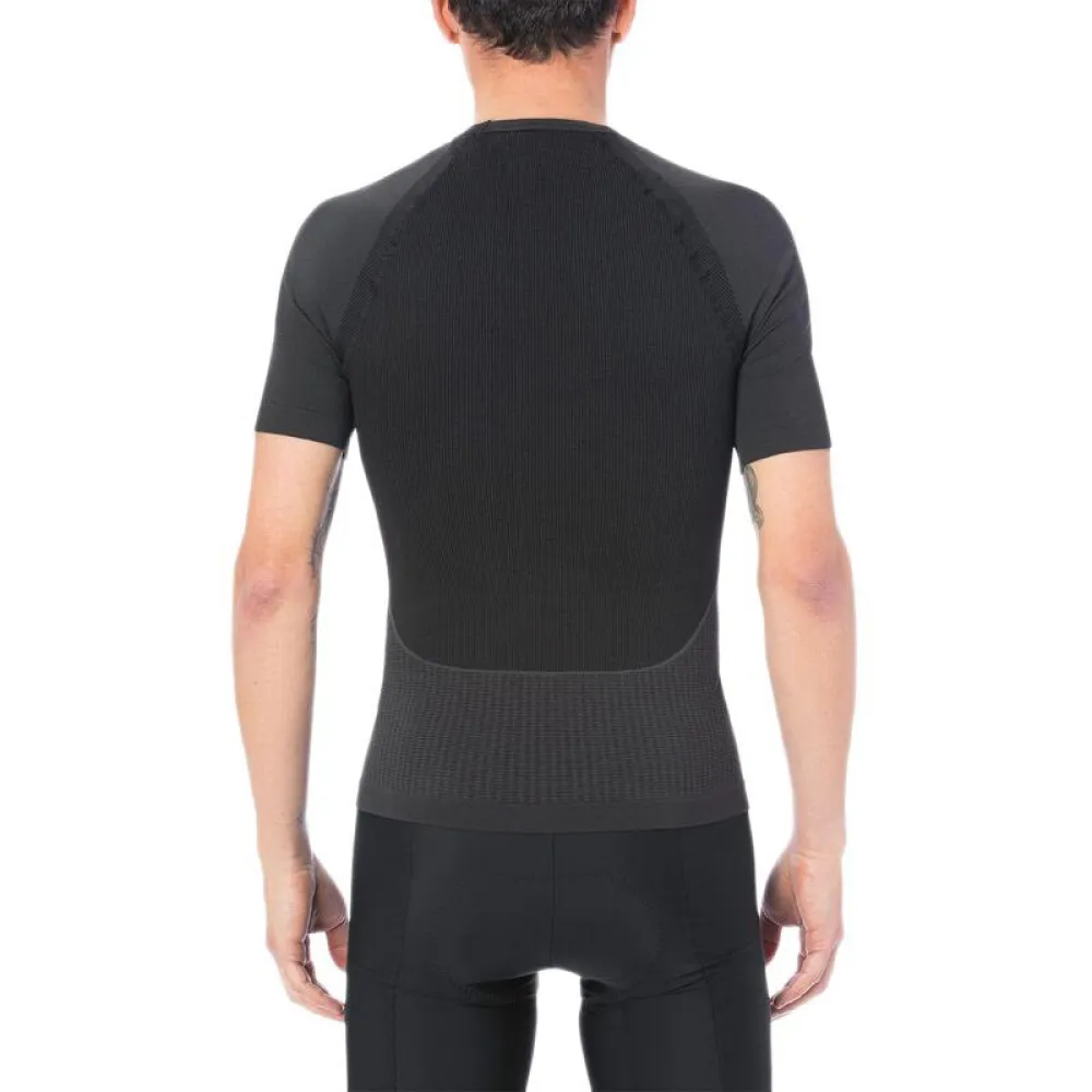 The lightweight engineered knit Men´s Chrono Base Layer does just that. It features nylon thread to ensure a soft feel, while polyester content pulls moisture away from your skin. It has enough stretch to allow freedom of movement and fit your body comfortably. It´s also extremely light and tucks easily under a bib short without any bunching.
