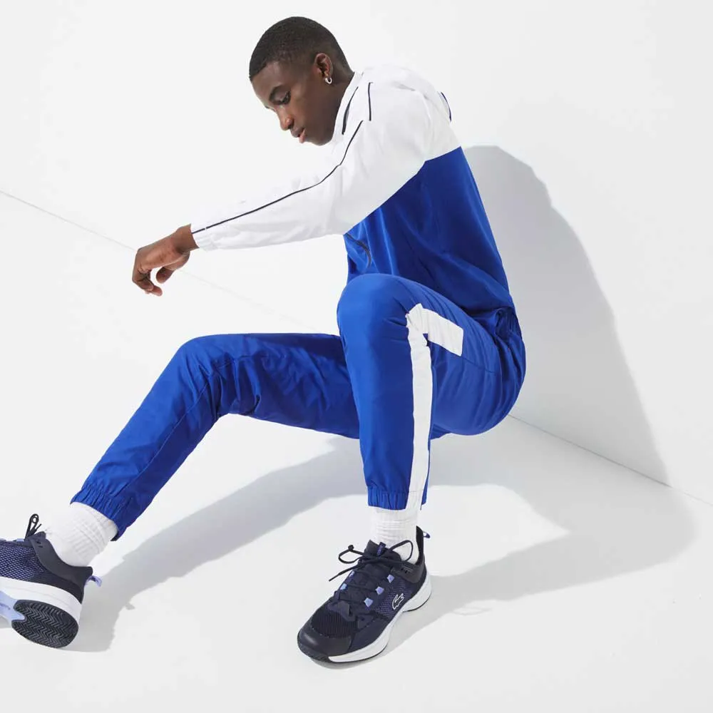 Go from victory to victory in this lightweight tracksuit crafted in diamond taffeta. With an emblematic colourblock design, it features a hooded zip jacket and pants with a comfortable Elasticised waistband. Several convenient pockets and exquisite finishes complete this new tennis essential.