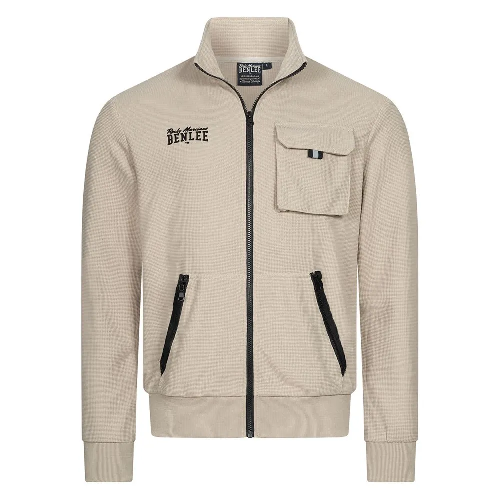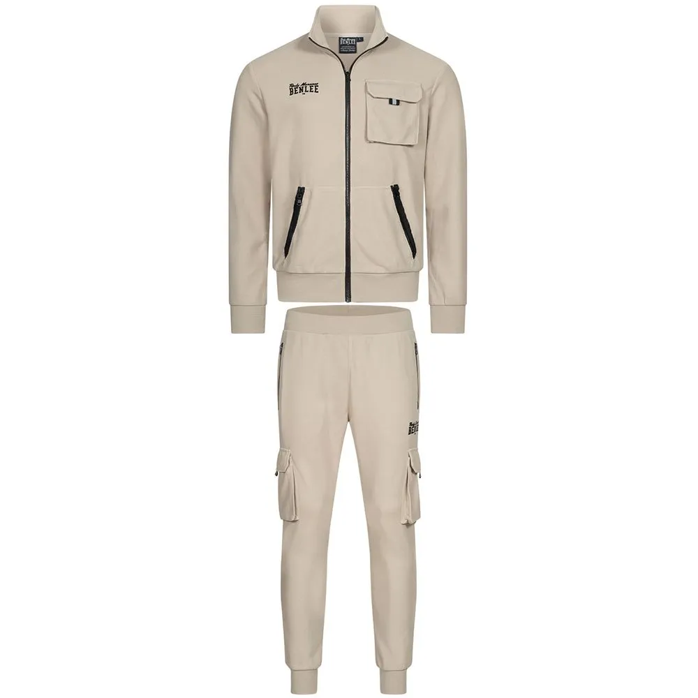 Men´s tracksuit slim fit Tracksuit consisting of a jacket and jogging pants. Both parts have a brand logo in a contrasting colour and several zip pockets or patch pockets. These can be closed with a Velcro fastener. There are elastic ribbed cuffs on the hems that adapt to the body shape.