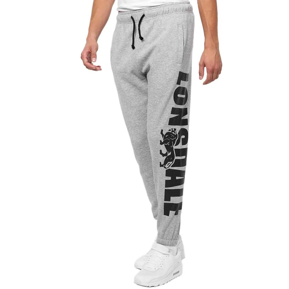 Lonsdale jogging pants with piped pockets and a large printed Lonsdale lettering on the left pant leg.
