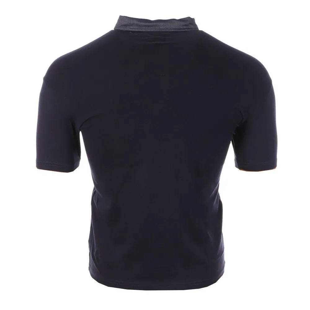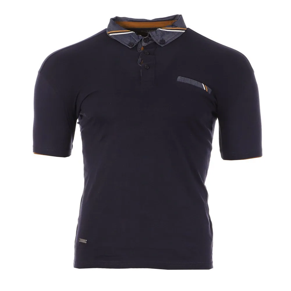 Fake pocket decoration on the heart side 3 stripes sewn on the collar & pocket.