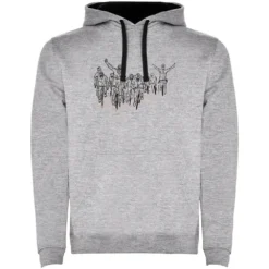 Two-colour hoodie with double fabric, contrasting adjustable drawcord.