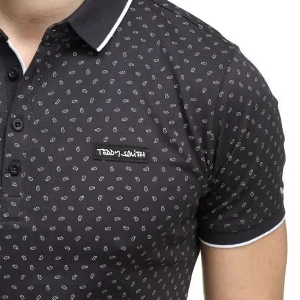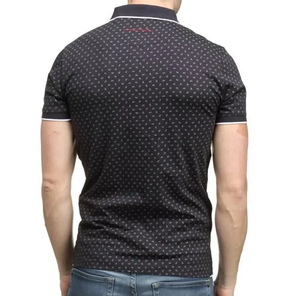 Colour: Navy Classic fit 4-button collar Short sleeves White patterned polo shirt Embossed inscription on the chest Composition: 100% cotton